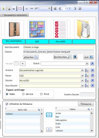 La recherche d’un document se fait sur son nom ou des mots clefs, son contenu