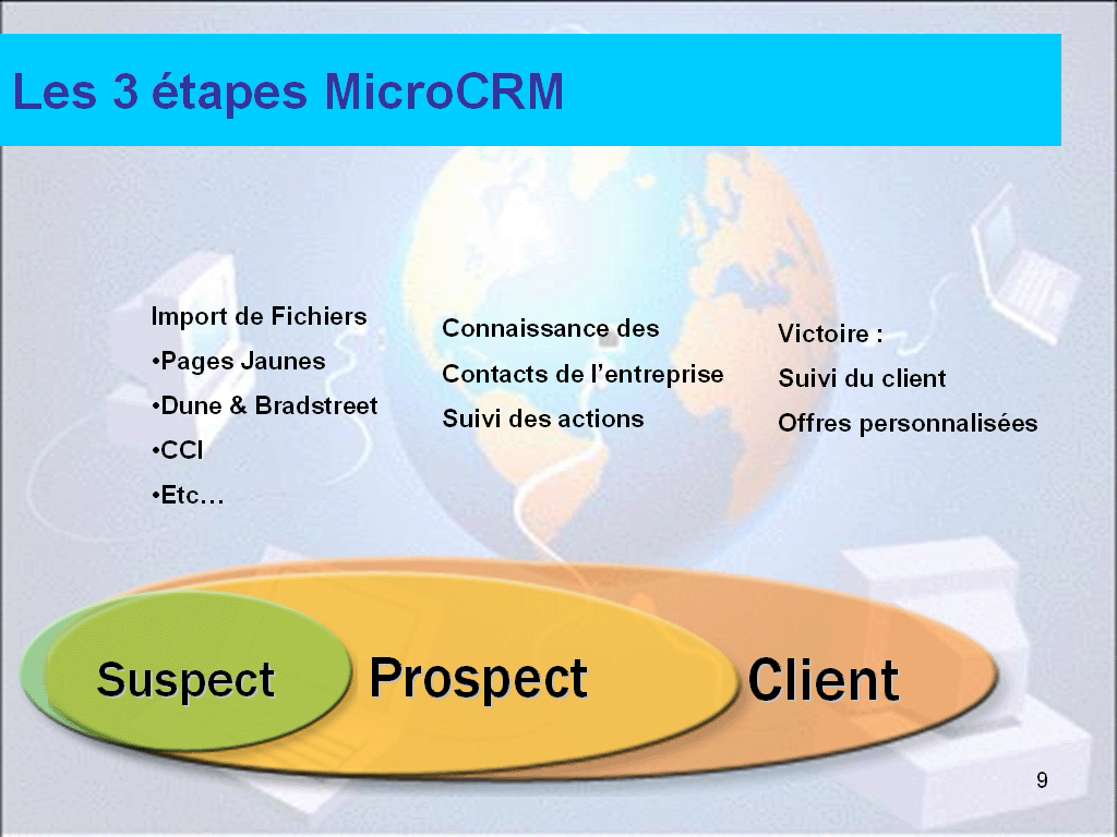En structurant l’information client, en modélisant les meilleures pratiques commerciales et en favorisant la collaboration entre les équipes, qu’elles soient sédentaires ou sur le terrain, MicroCRM donne aux commerciaux tous les moyens pour concentrer leurs efforts sur les meilleures opportunités et atteindre plus vite leurs objectifs.